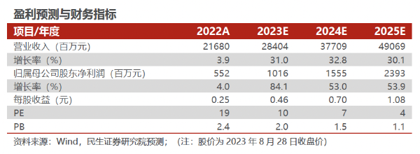■ 投资建议:公司智能缆网业务保持行业领先,储能业务有望放量,蜜桃视频APP下载官网预计公司2023-2025年营收分别为284.04、377.09、490.69亿元,增速为31%、32.8%、30.1%;归母净利润分别为10.16、15.55、23.93亿元,增速为84.1%、53%、53.9%,对应8月28日收盘价,公司23-25年PE为10X、7X、4X。维持“推荐”评级。